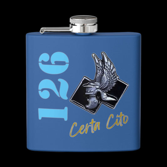 126 Signal Squadron 90โs Era Patch Stainless Steel Flask โ Certa Cito โ 6oz